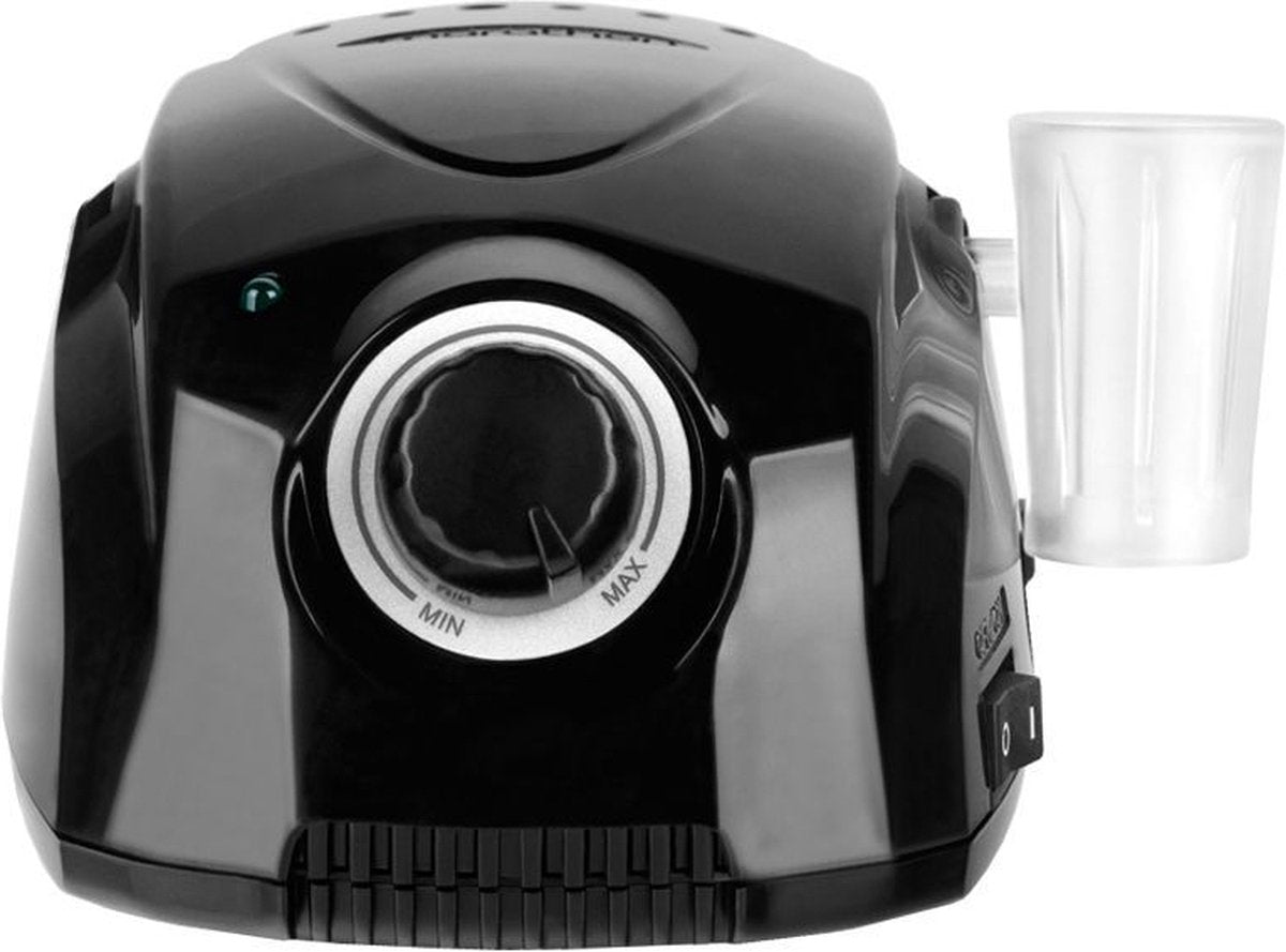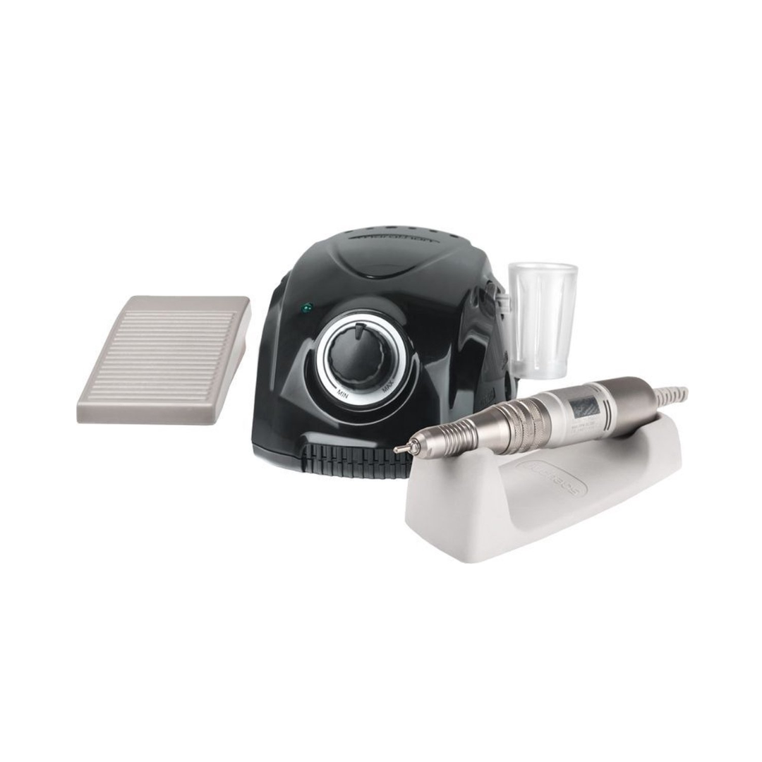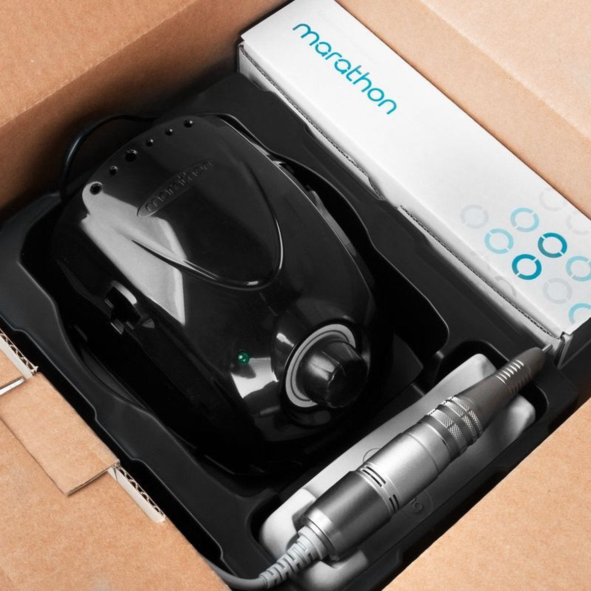 De Marathon 3 Elektrische Frees is een zeer compacte nagelfrees en is gemakkelijk om mee te nemen. Deze Marathon 3 nagelfrees is ideaal voor starters maar ook zeer geschikt voor de meer gevorderde nagelstylisten. Deze elektrische vijl kan zowel links- als rechtsom draaien en kan worden bedient met de hand. Deze zeer betaalbare en kwalitatieve elektrische nagelvijl is bijna geluidloos en de vibratie is minimaal wanneer deze in gebruik is. De snelheid kan aangepast worden tot maximaal 30.000 toeren. De bitjes kunnen worden opgeborgen in de daarvoor bestemde gaatjes aan de bovenkant van het apparaat. Hierdoor zijn de bitjes altijd binnen handbereik. Het twistlock handstuk kan naast de siliconen houder ook in de transparante plastic houder worden geplaatst. Deze transparante plastic houder kan aan beide zijde van de machine worden bevestigd.